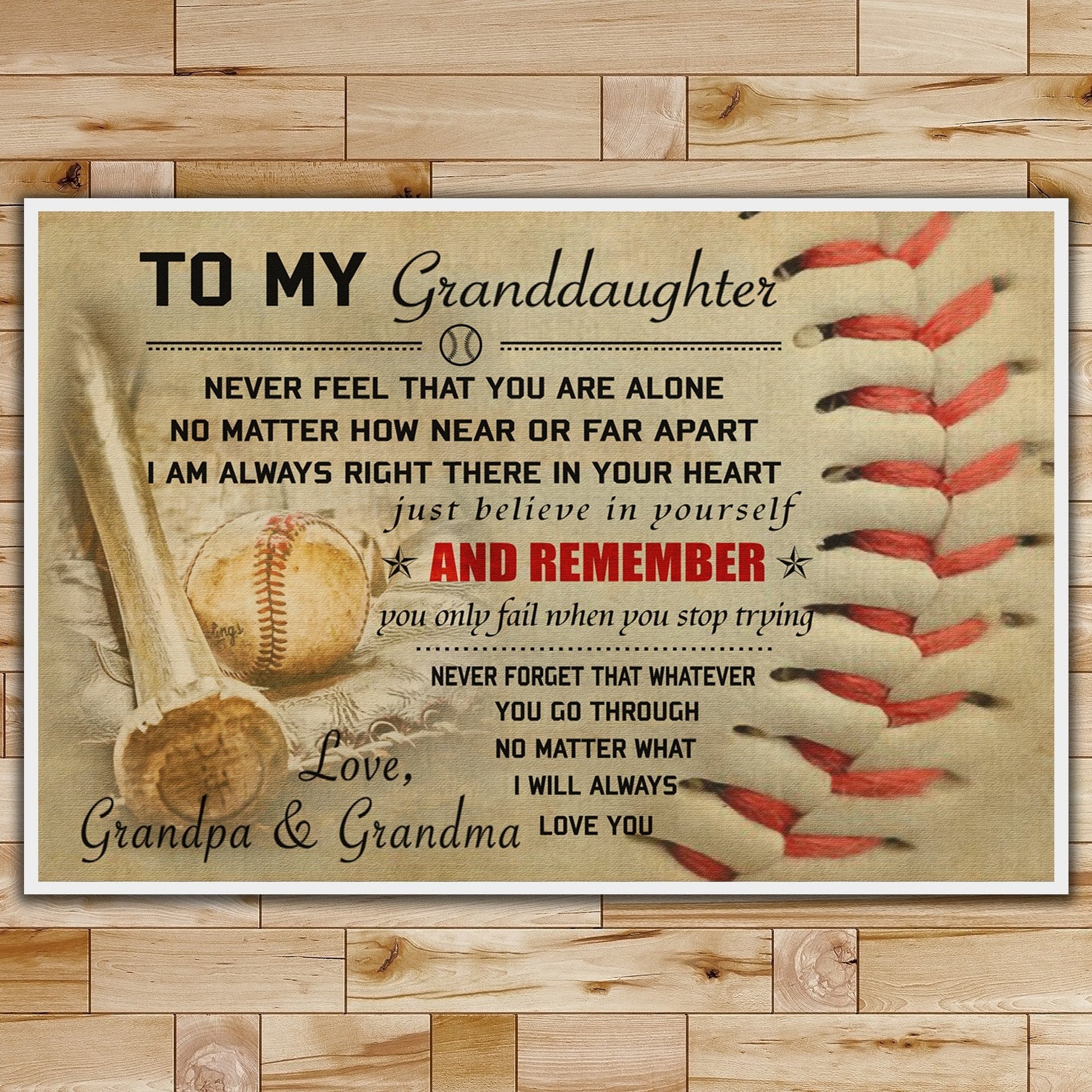 BA012 - To My Granddaughter - And Remember - Grandpa & Grandma - Baseball Poster