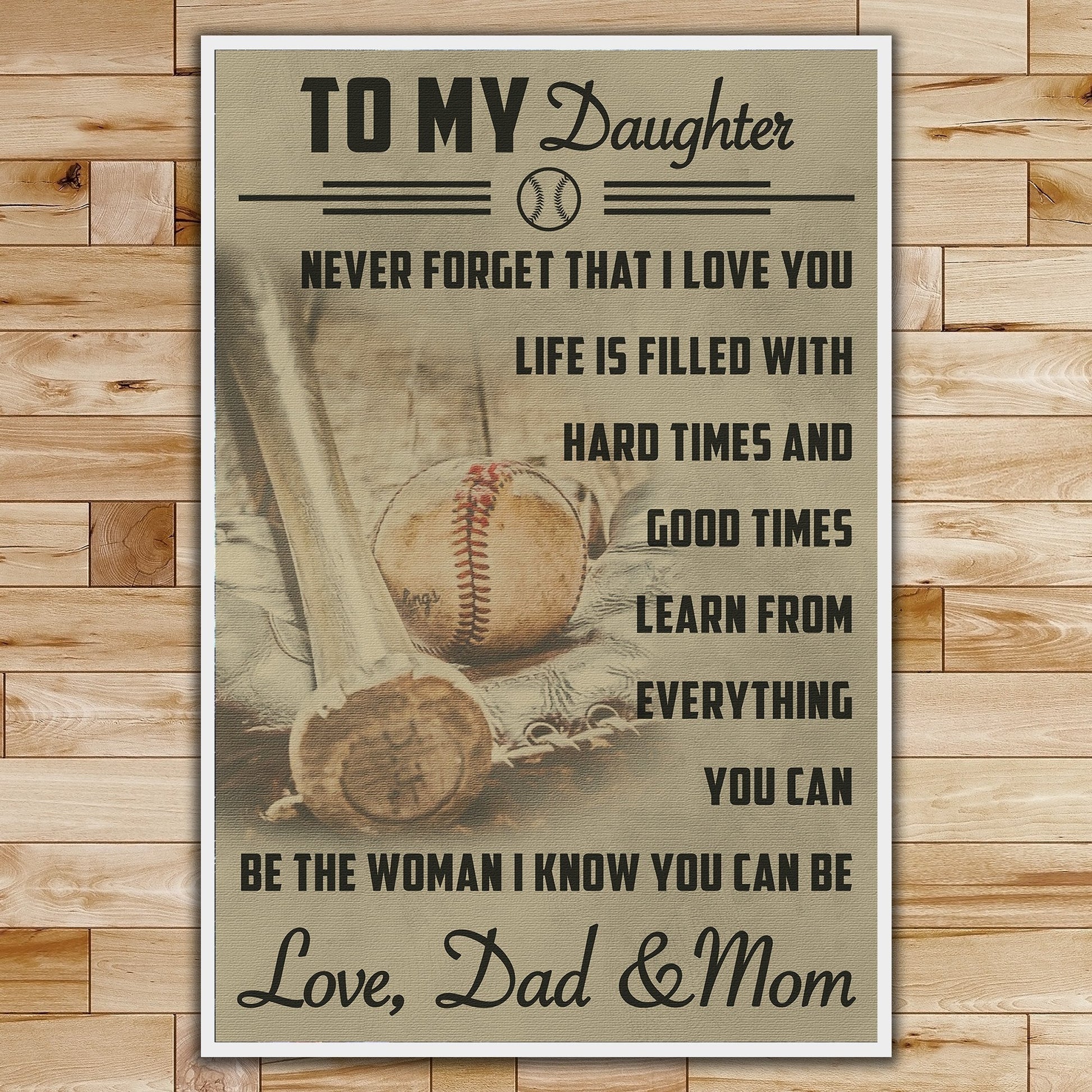 BA018 - To My Daughter - Good Time - Dad & Mom - Baseball Poster