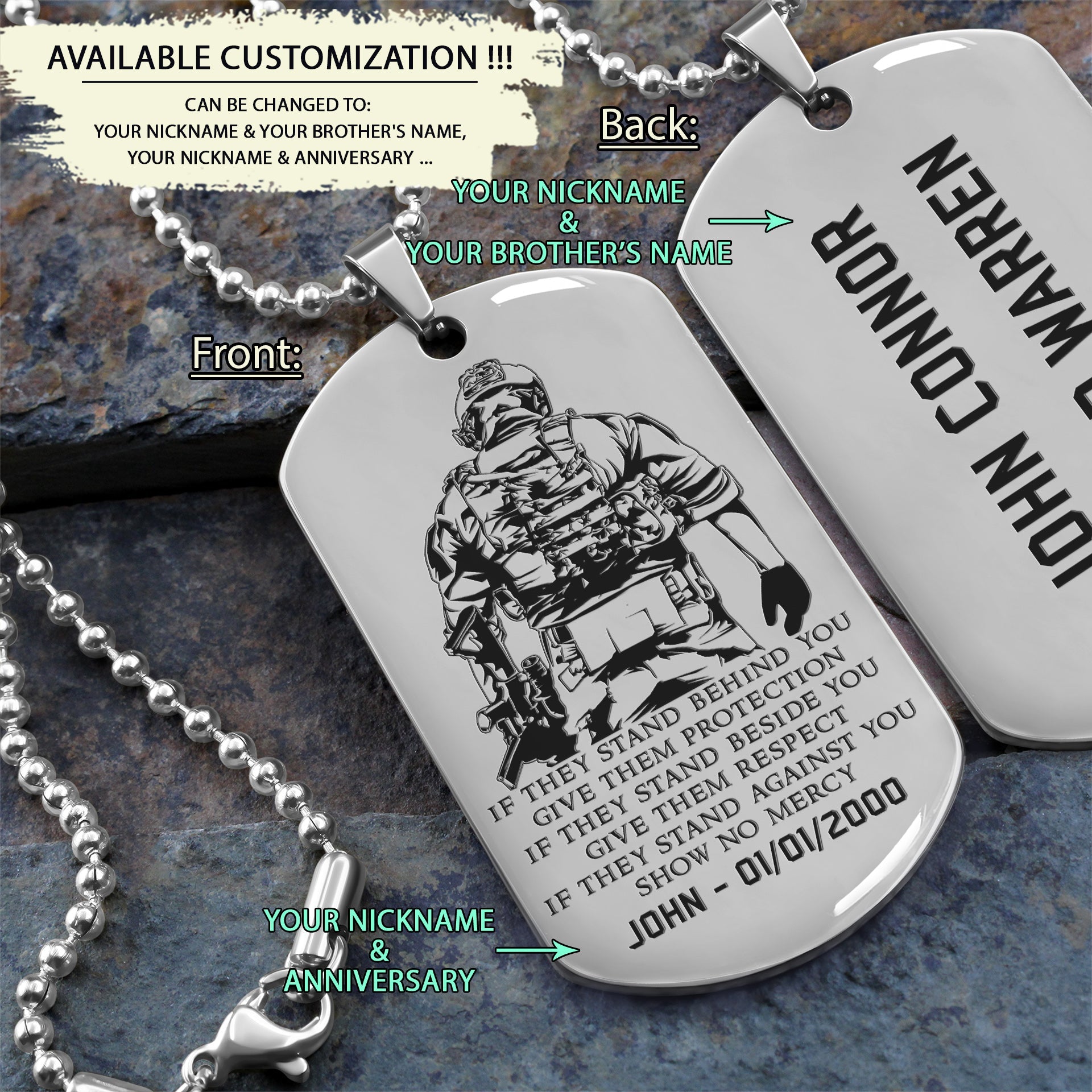 SDD021 - IF - Show No Mercy - Soldier Dog Tag - Engrave Silver Dog Tag