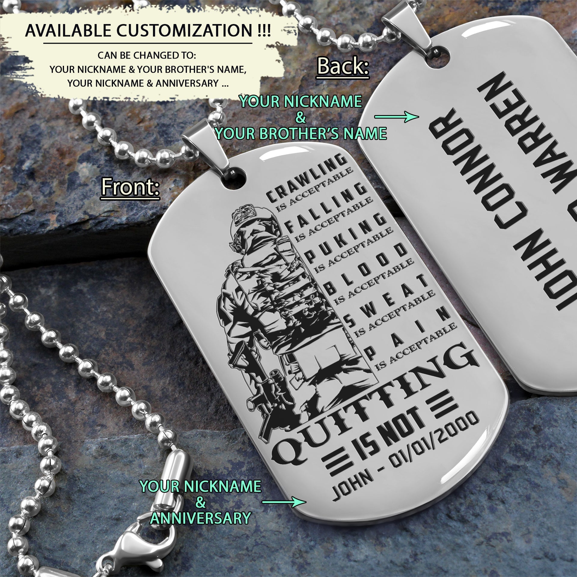 SDD023 - Quitting Is Not - Soldier Dog Tag - Engrave Silver Dog Tag