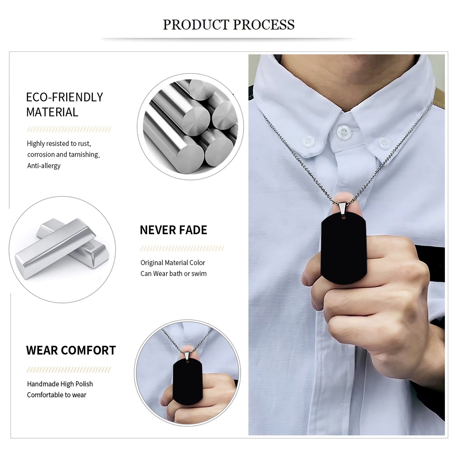 Product Dimensions: Weight = 16.4g; Dog tag 48mm x 28mm; Luxury Military Necklace: 24" (61cm) with upgraded clasp