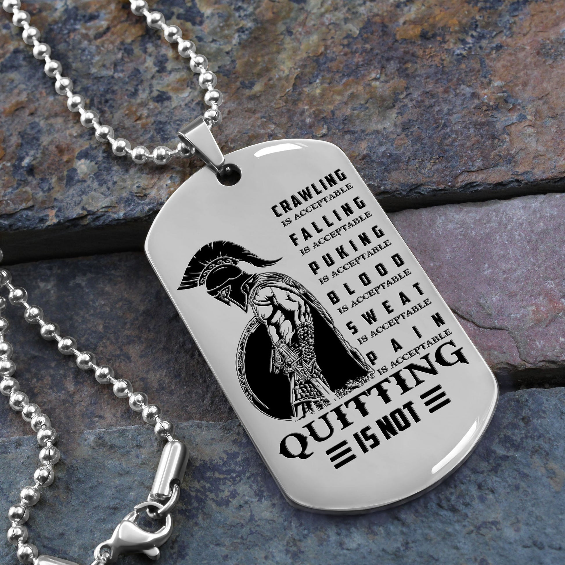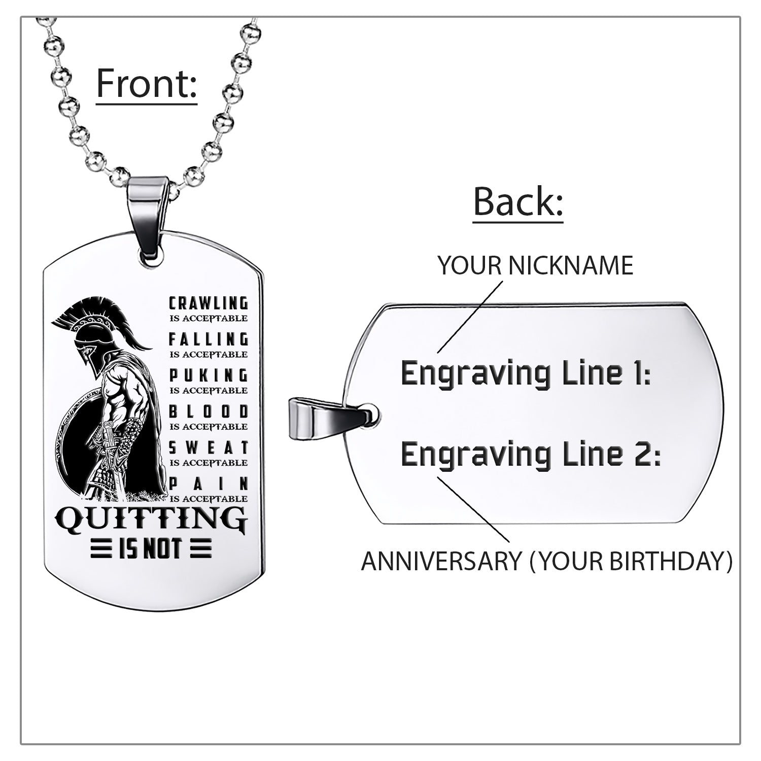 WAD011 - Quitting Is Not - Warrior Dog Tag - Engrave Sliver Dog Tag