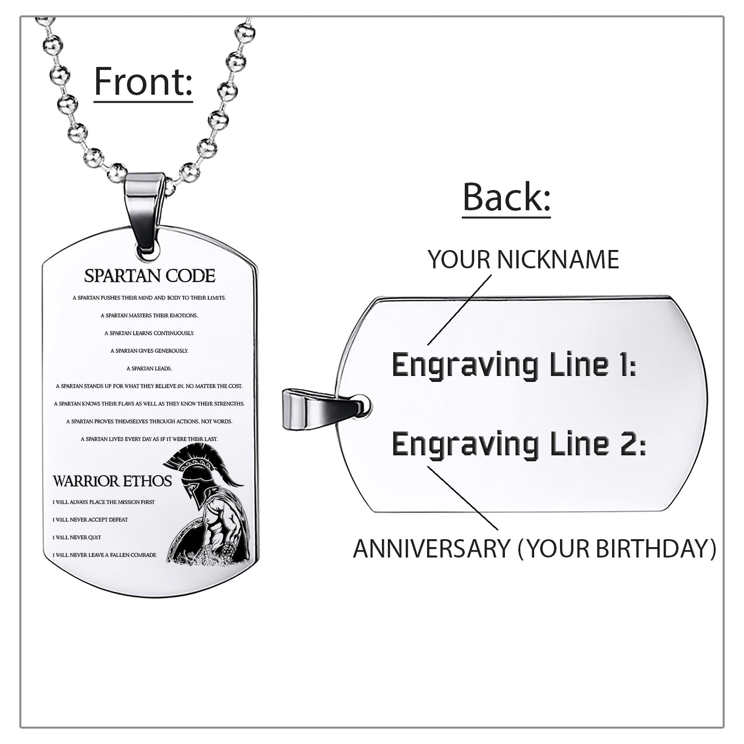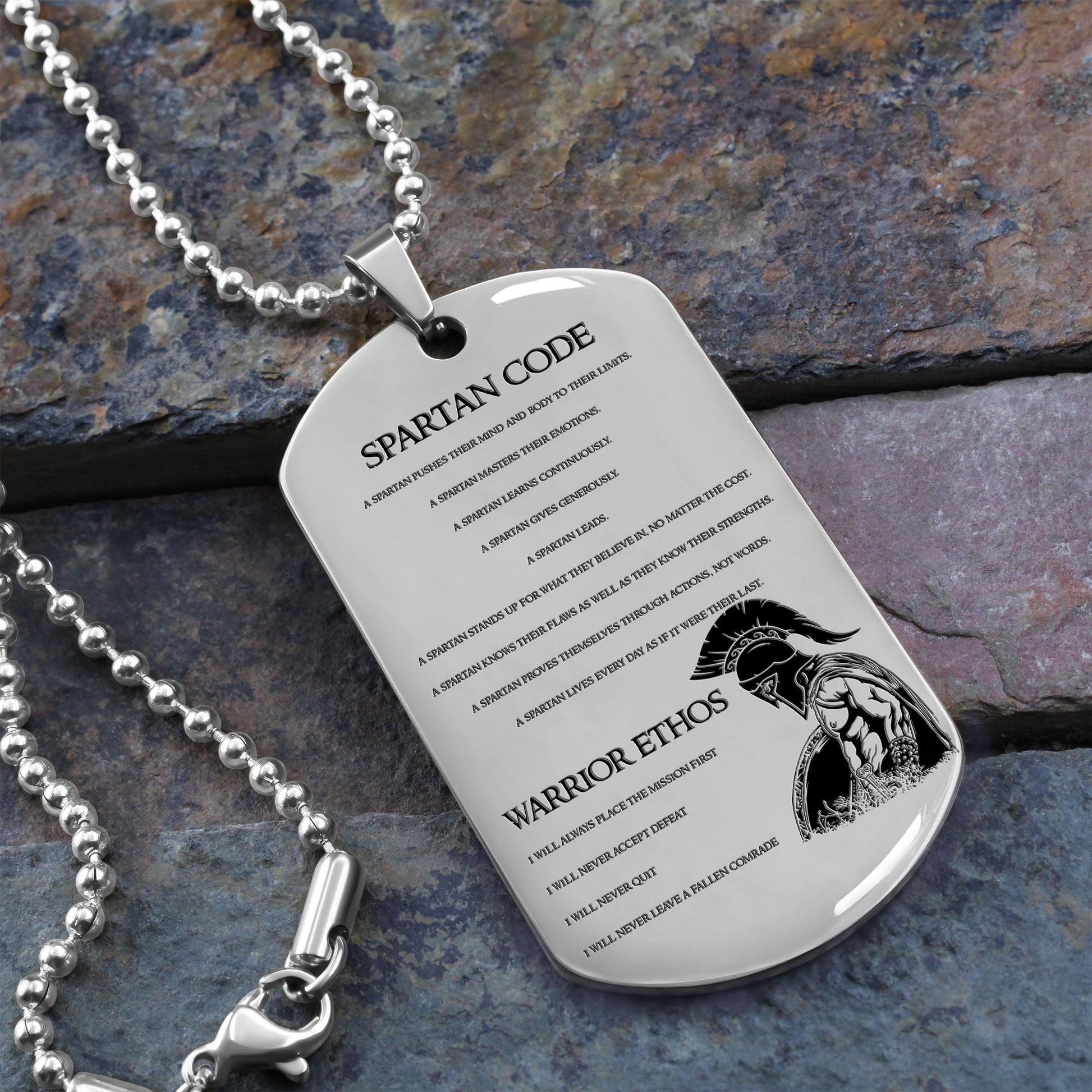 WAD021 - Spartan Code - English - Warrior Dog Tag - Engrave Sliver Dog Tag