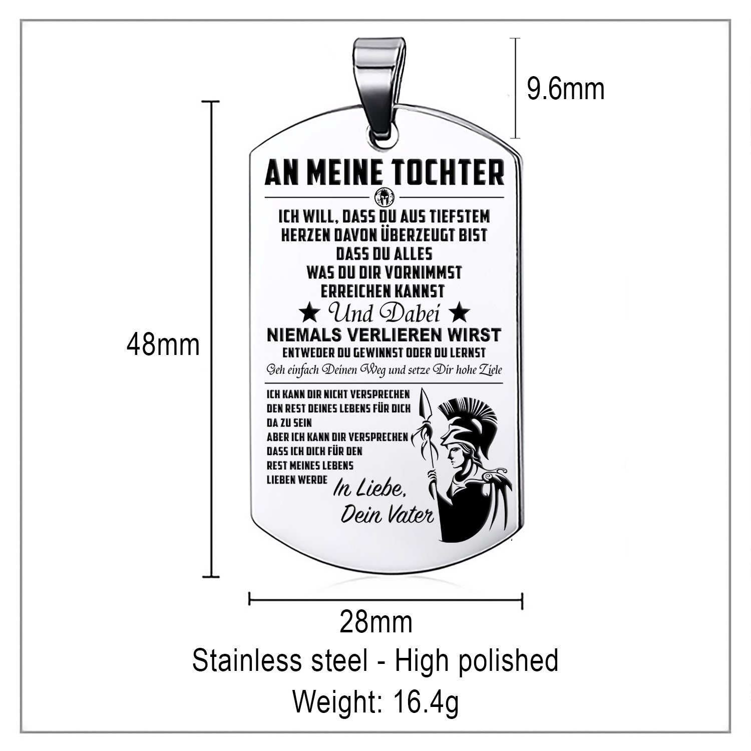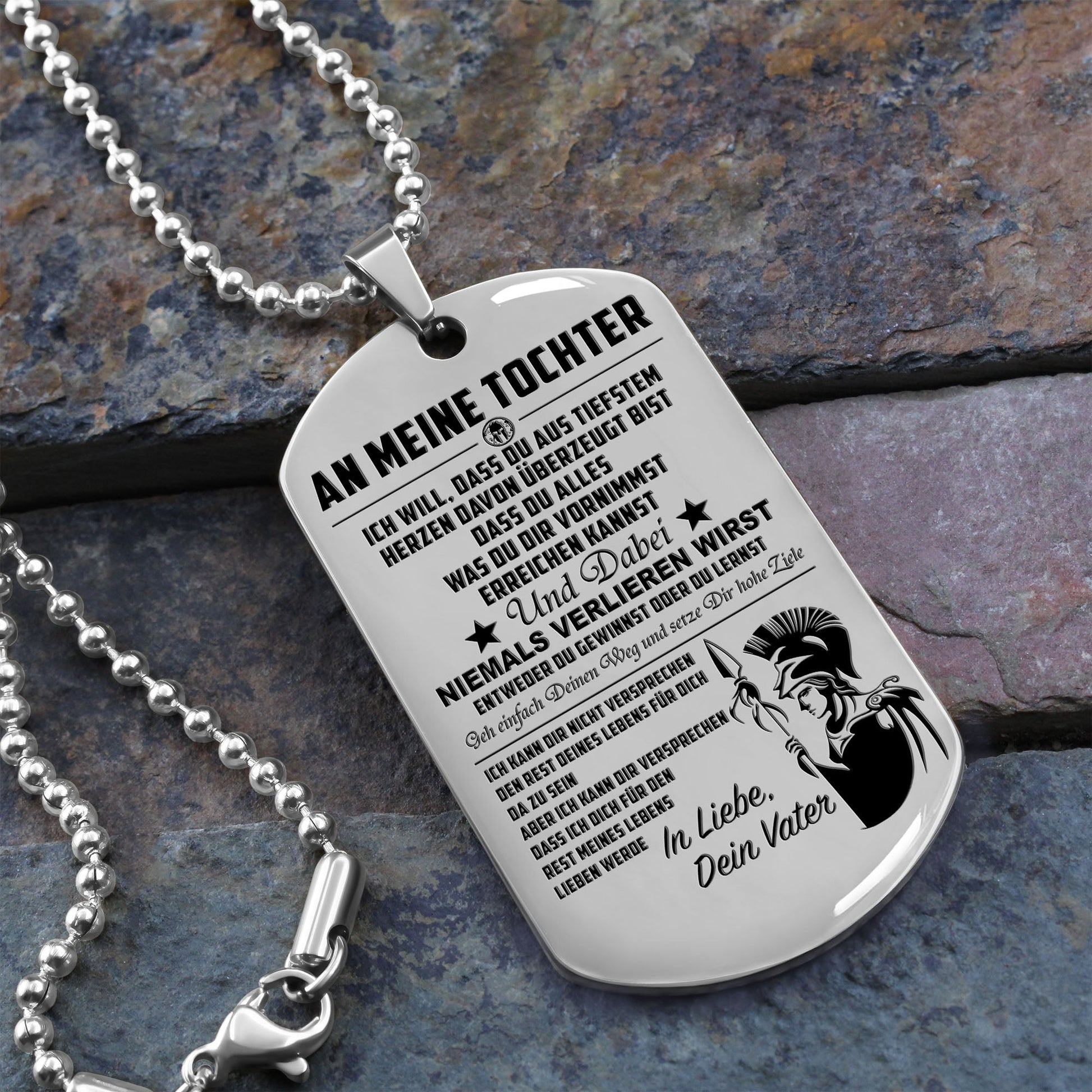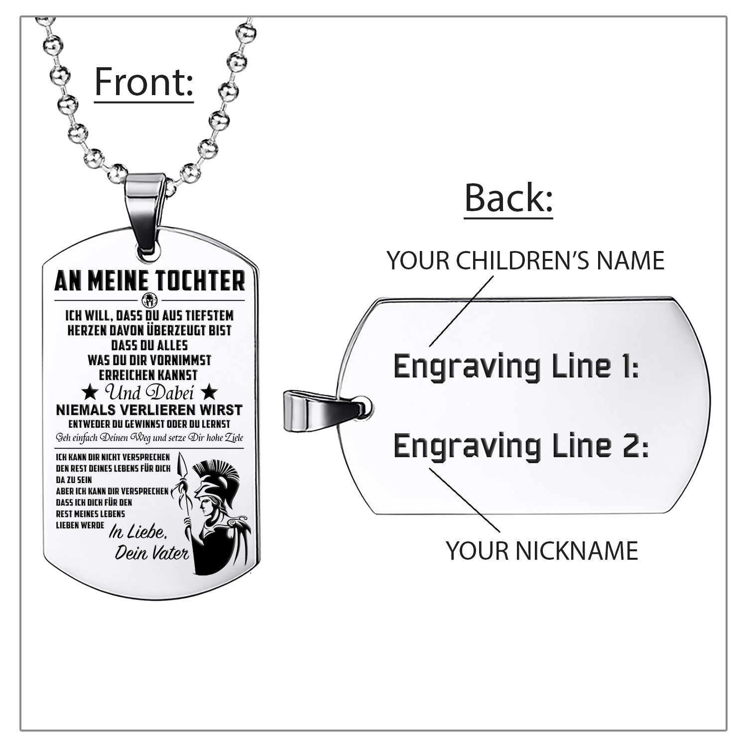 WAD023 - Mom To Daughter - Never Lose - German - Warrior Dog Tag - Engrave Sliver Dog Tag