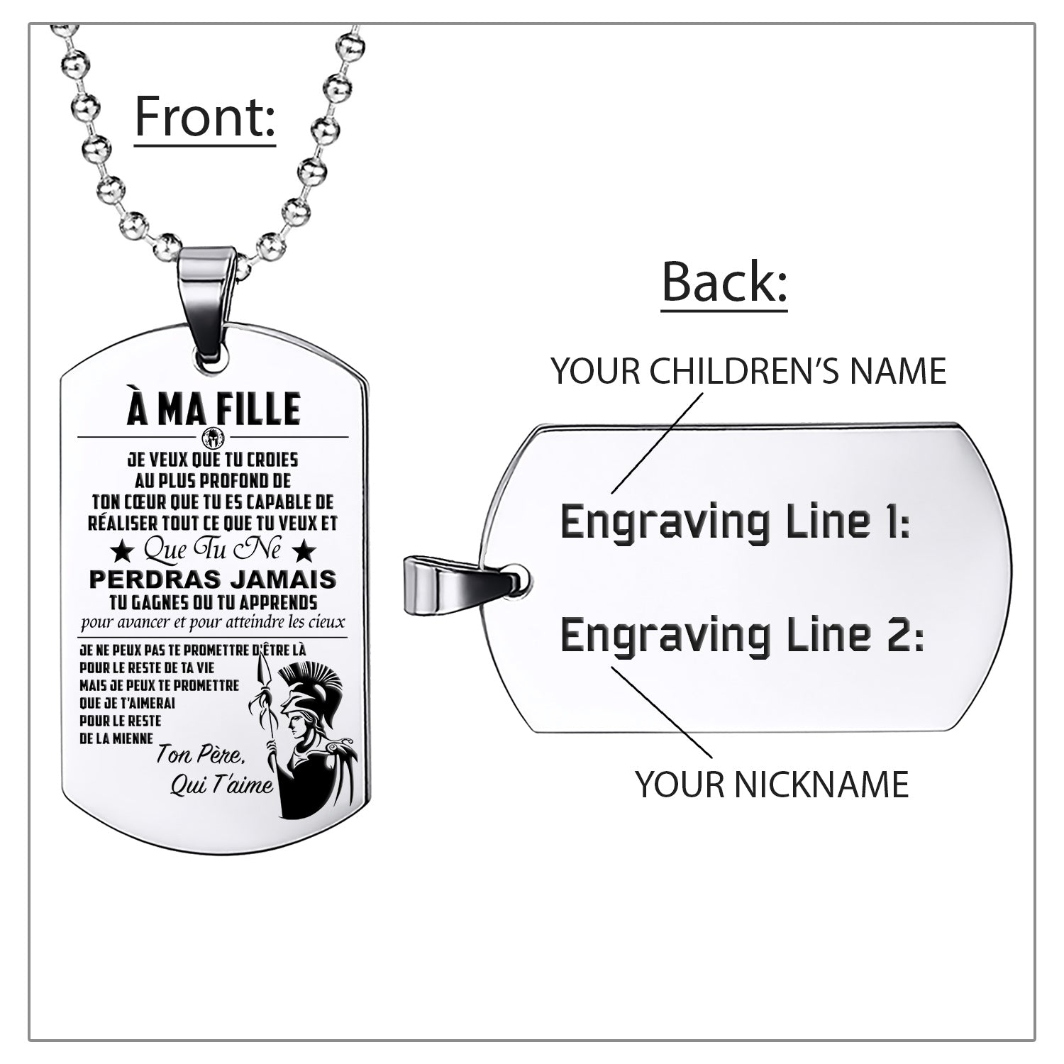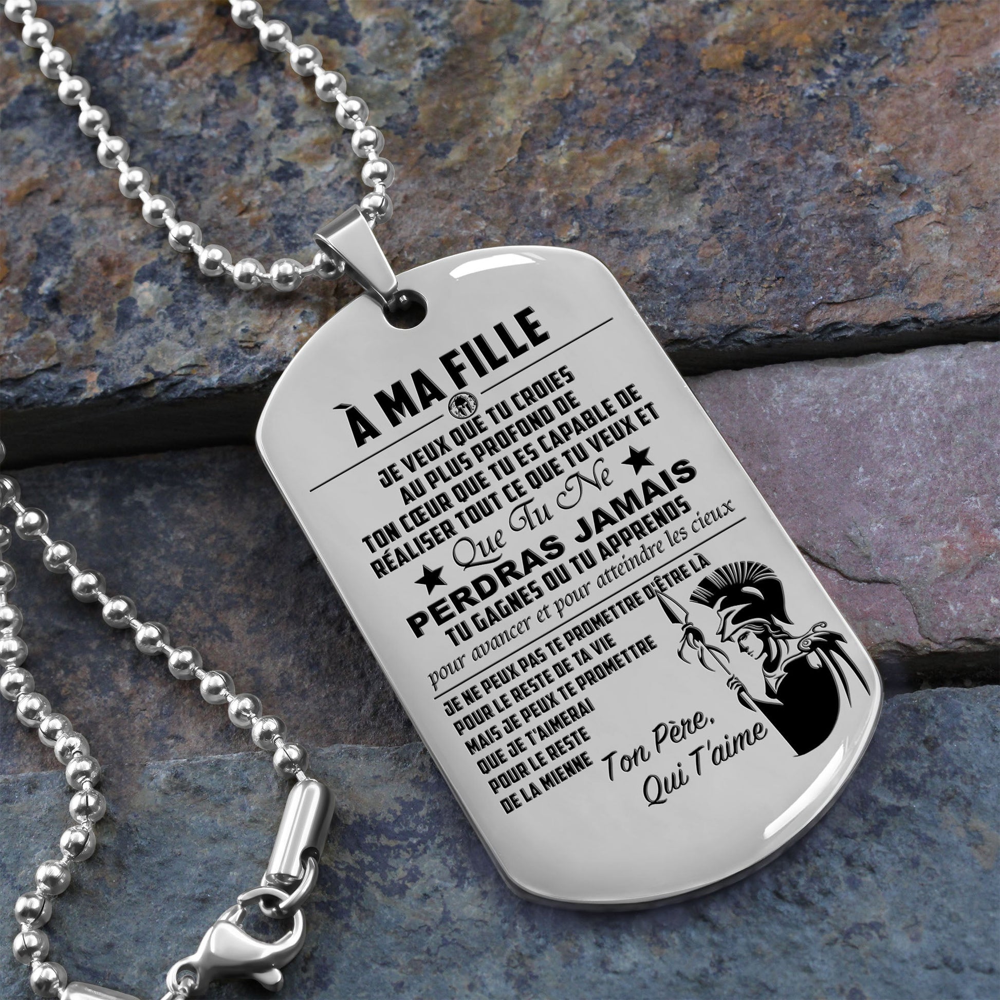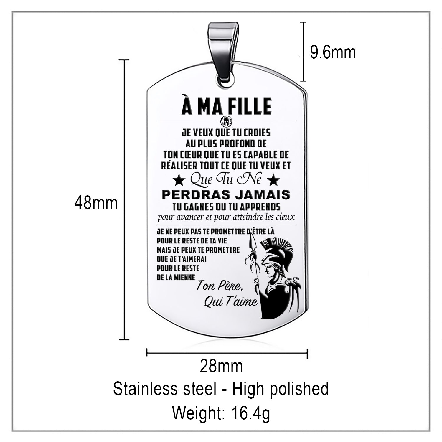 WAD024 - Mom To Daughter - Never Lose - French - Warrior Dog Tag - Engrave Sliver Dog Tag