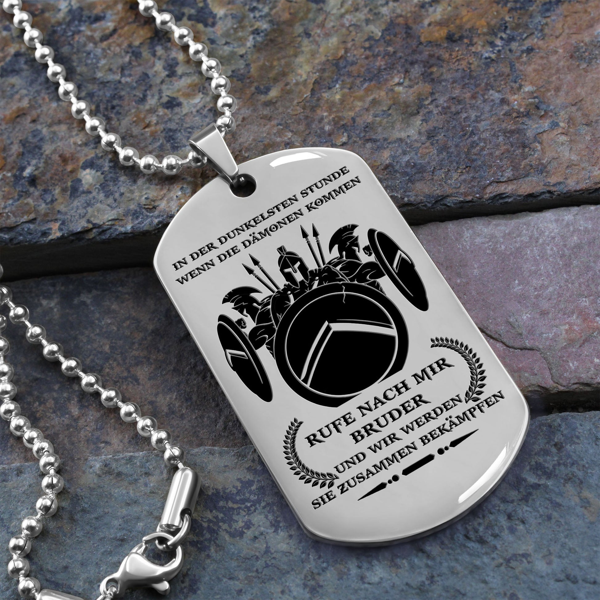 WAD027 - Call On Me Brother - German - Warrior Dog Tag - Engrave Sliver Dog Tag