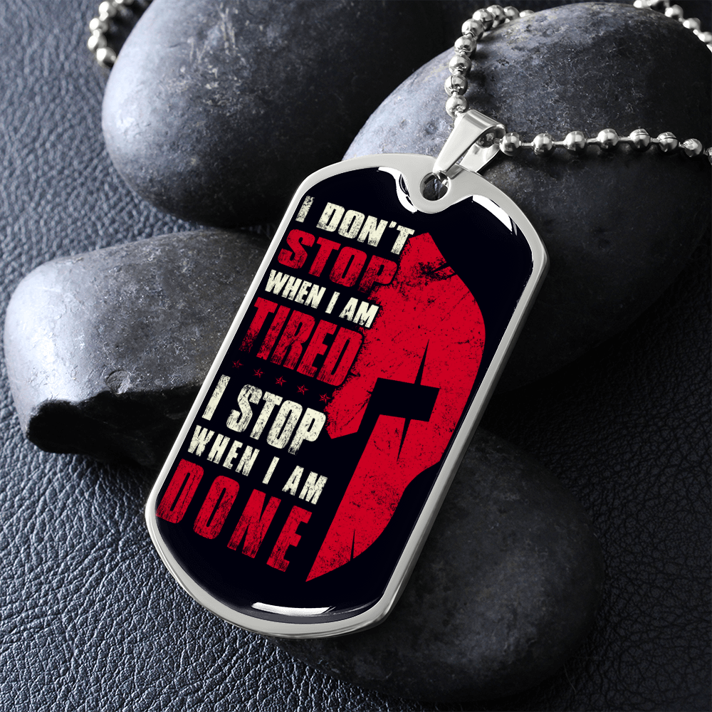 Warrior - Spartan - I Don't Stop When I Am Tired - I Stop When I Am Done - Luxury Dog Tag - Military Ball Chain